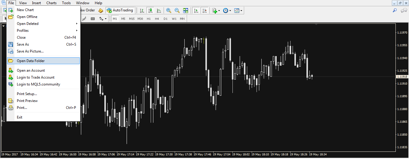 كليك على File ثم كليك على Open Data Folder،