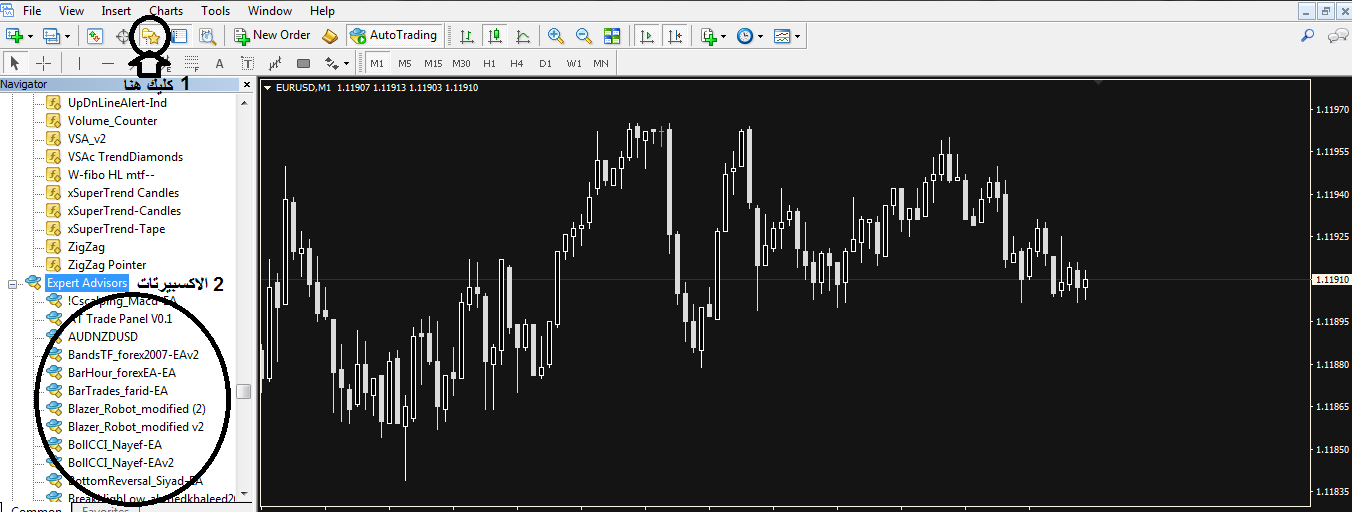 اغلق المنصة وأعد فتحها ستجد الاكسبيرت ضمن الاكسبيرتات بالمنصة، يمكنك سحبه على الشارت أو اختباره بالباكتيست