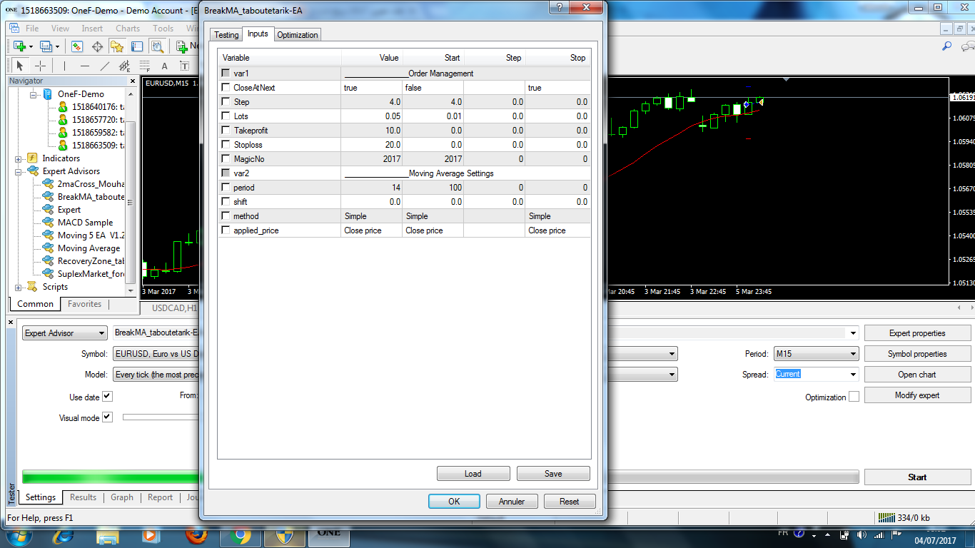 الإستراتيجية تقول الدخول على الإيطار الزمني للساعة وعمل مؤشر المتوسط المتحرك 14 بحيث إذا قطع السعر المتوسط المتحرك ب 4 نقط يدخل الصفقة بهذف وستوب ولايفتح أي صفقة أخرى حتى يضرب الهذف أو الوقف لأنه ممكن أن لا يضرب الهذف أو الوقف فيرجع السعر لملامسة المتوسط ويفتح صفقة أخرى ونحن لا نريده أن يفتح أي صفقة ما لم يحقق الصفة الأولى.