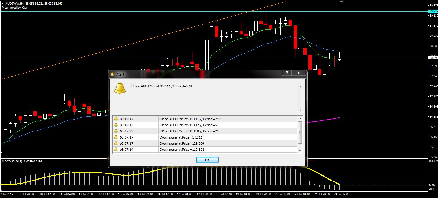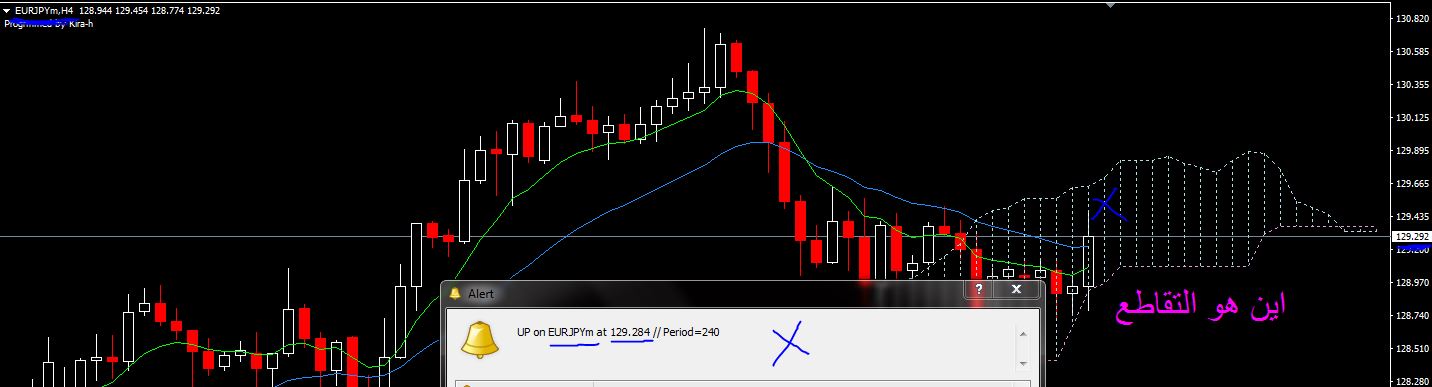 وايضا يعطينى رسالة تقاطع 8 مع 21 عندما يحدث على الفريمات ساعة واربعة واليومى والاسبوعى ، ولا علاقة لى بالقاطعات الأخرى