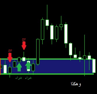 1.شراء عند كسر السعر الخط العلوي للمؤشر من الاسفل الى الأعلى