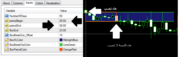 شمعة peiodBegin لا تحسب(أي لا يحسب الهاي والو بتاعها) وشمعة periodEnd هي التي تحسب