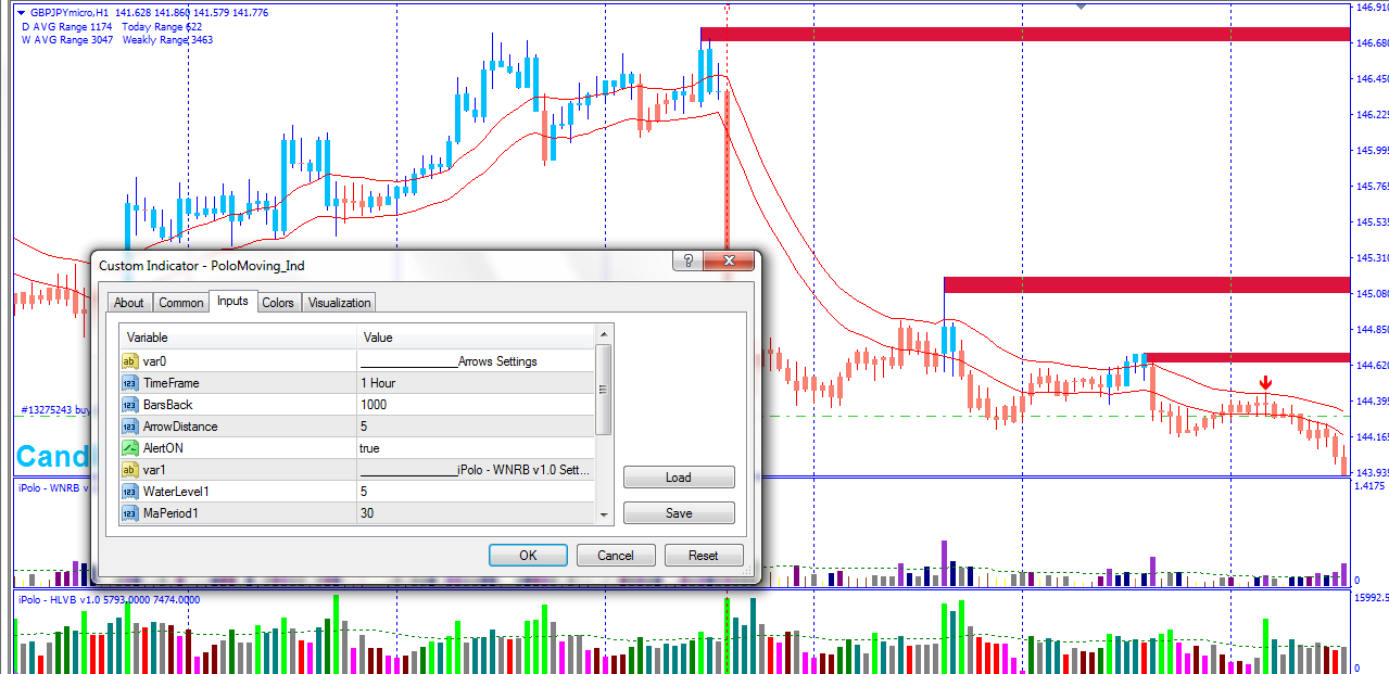 - اعدادات مؤشر تلوين الشموع ( الموفينج المرفق) لتغيرها يدويا