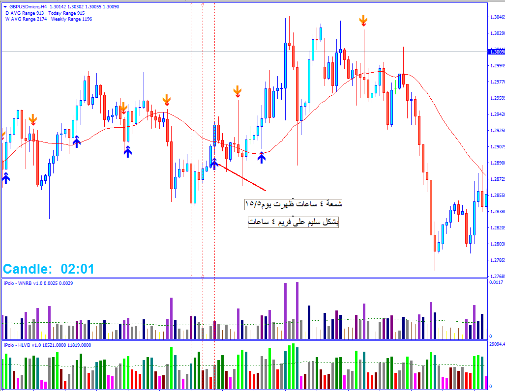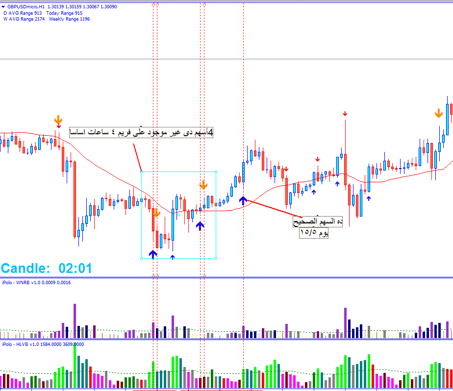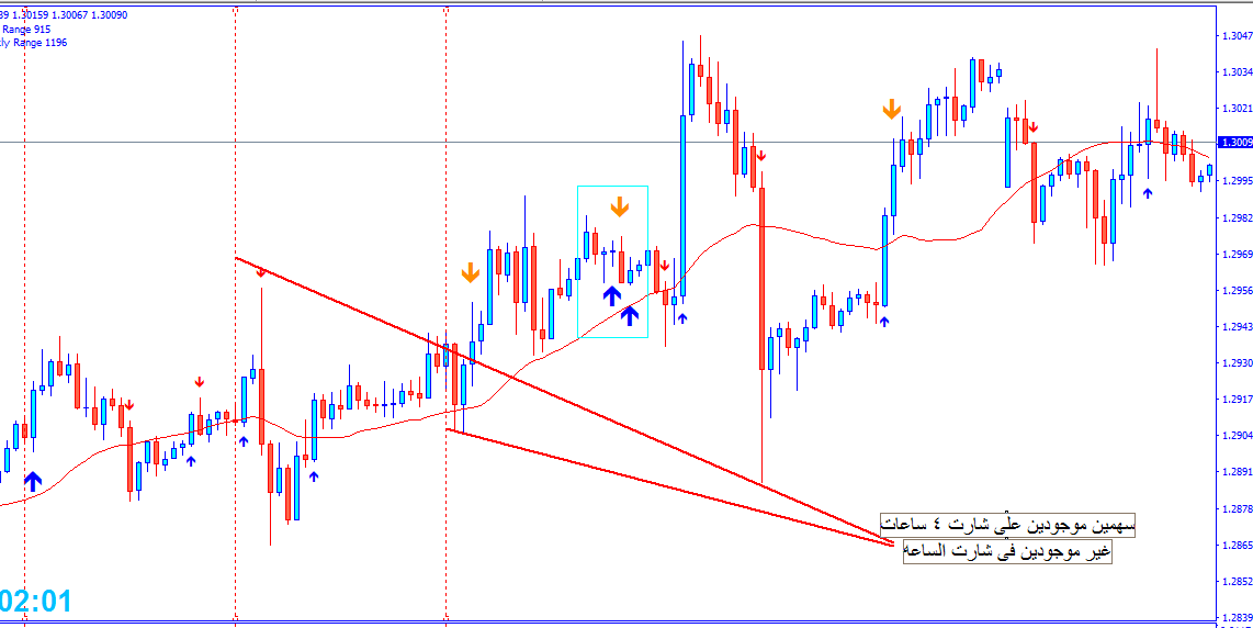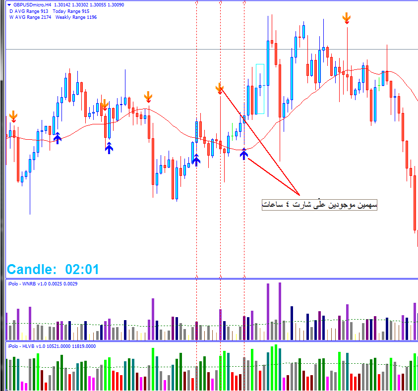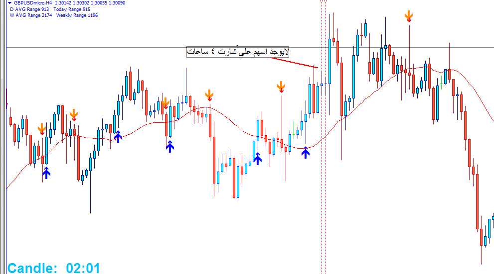 - المسافة بين الاسهم عن الشموع