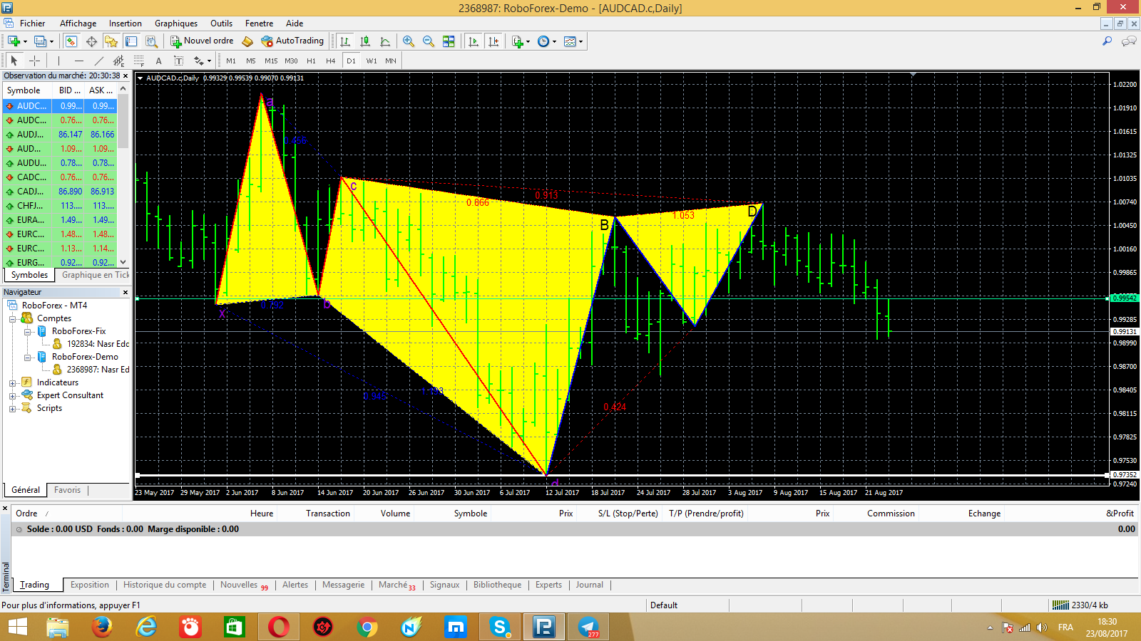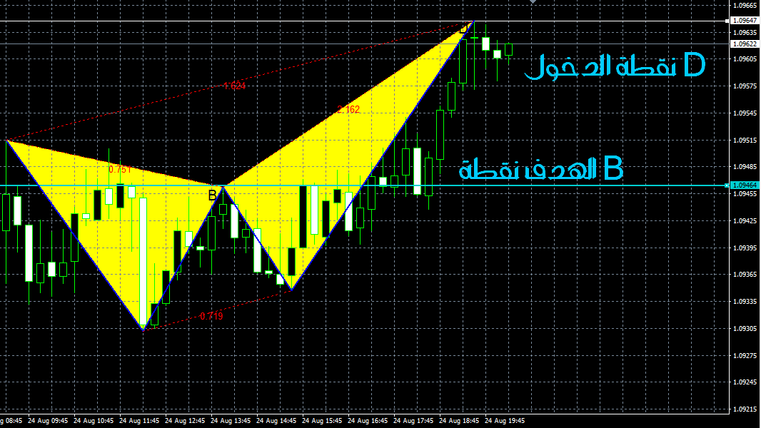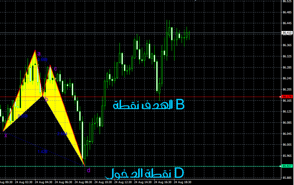 كما رايتم فرصة شراء من نقطة D فور ملامسة نقطة D تفتح الصفقة اوتوماتيكيا و الهدف يكون اسفل نقطة B تحسبا للاسبريد طبعا