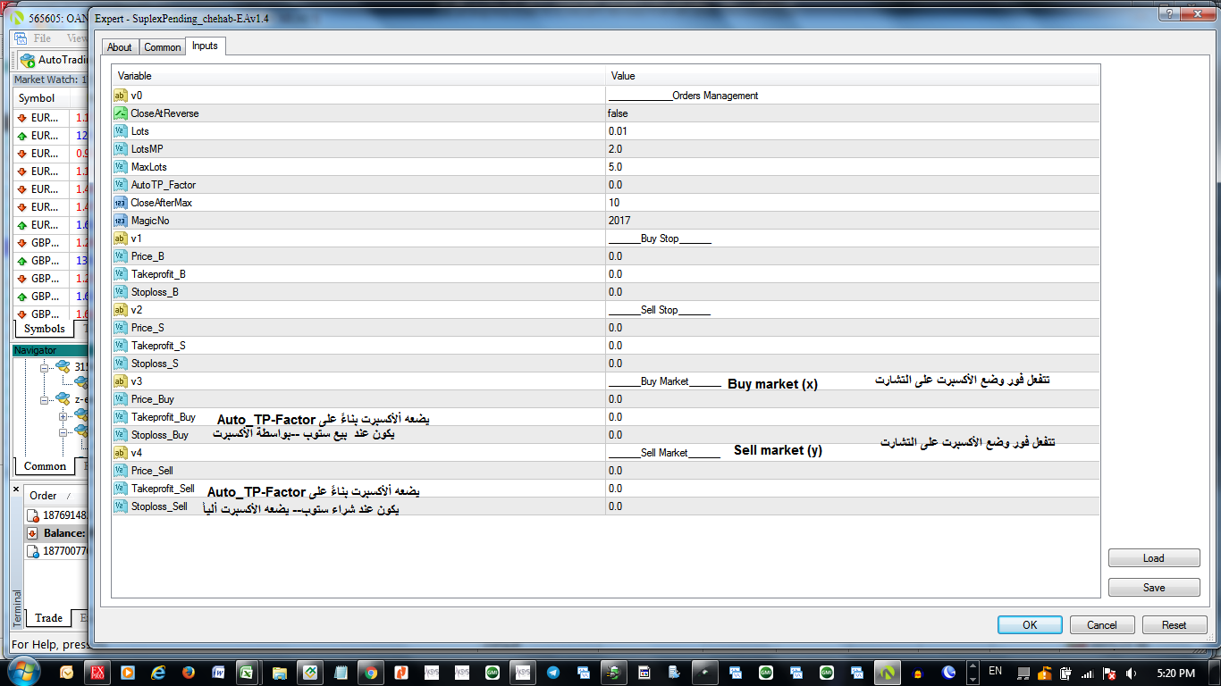 و الوظيفة الثانية = ان يكون لدي الخيار = البيع ماركت او الشراء ماركت فور وضع الأكسبرت على التشارت