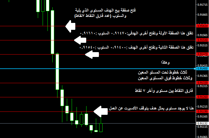 يقوم الأكسبرت برسم عدد من الخطوط فوق وتحت المستوى المعين (عدد الخطوط أحدده أنا من داخل الأكسبرت) بفارق نقاط معين عن المستوى وعن بعضها البعض (يحدد عدد النقاط هذا من داخل الأكسبرت)