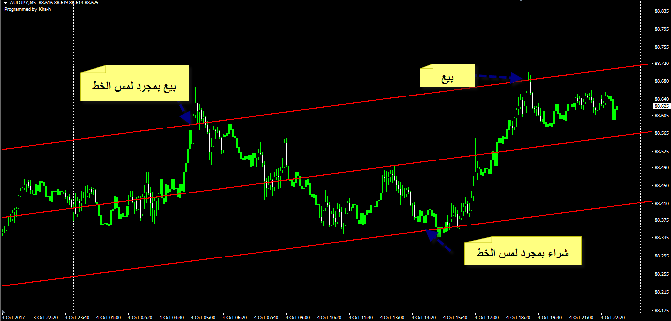 الشراء عند لمس خط المؤشر الثالث فى الاسفل من اعلى لاسفل