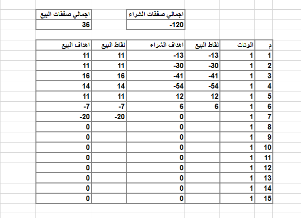 بينما تفعل لدينا عدد 6 صفقات شراء 5 منها سالبة كالتالي : -