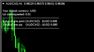 كما نعلم أن قيمة النقطة تختلف من زوج لاخر فهذا المؤشر دوره أنك تضع اللوت ويظهر لك قيمة النقطة بناءا على هذا اللوت