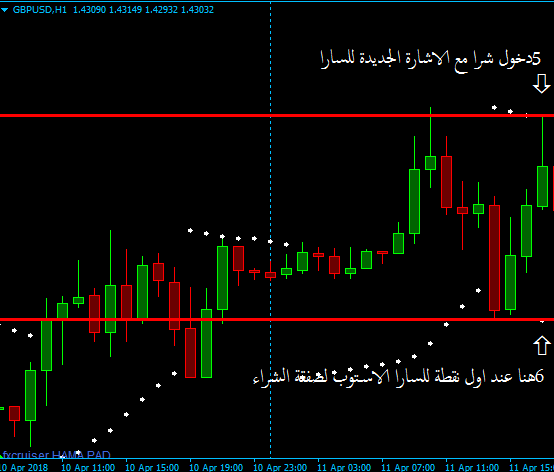 اذا المحصلة شراء -ضرب الاستوب انتظار- مؤشر سارا يعطي شراء -انتظار- مؤشر سارا يعطي بيع -دخول