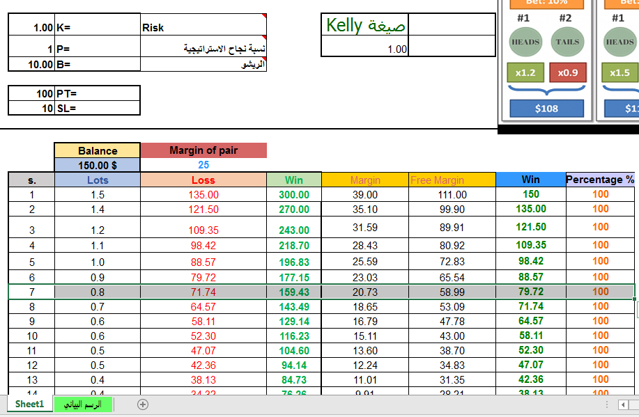 مرفق اكسبريت من تصميمك اتمنى ان يتم التعديل ليتم احتساب اللوتات وفقا لمعادلة كيلي المشروح