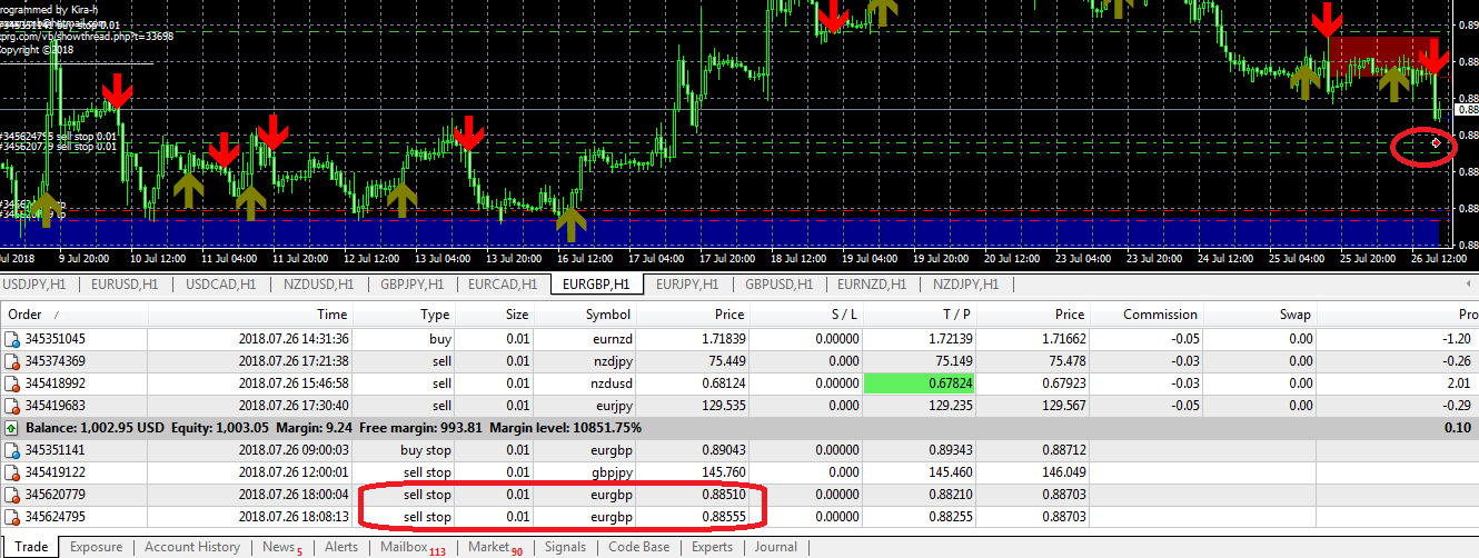 1- انه في حالة غلق المنصة وتشغيلها مره اخرى يقوم بفتح اوامر معلقة مكرره رغم وجود نفس الاوامر ولكن بسعر مختلف مثل الصورة المرفقة فالرجاء تعديلها بحيث لايفتح صفقات معلقة لمجرد اغلاق المنصة وفتحها