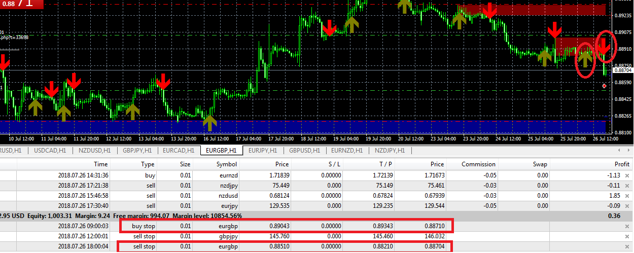 2- في حالة وجود امر بيع معلق ولم يتم تفعيله لعدم وصول السعر اليه وفي نفس الوقت تم ظهور اشارة شراء لنفس الزوج فالمطلوب في هذه الحالة اغلاق الامر المعلق ونفس الكلام في الشراء ايضا