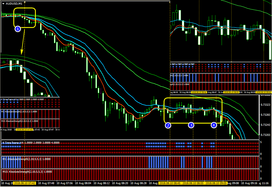 و مؤشر AbsoluteStrength باعدادات ADX/M1 و ADX/M15