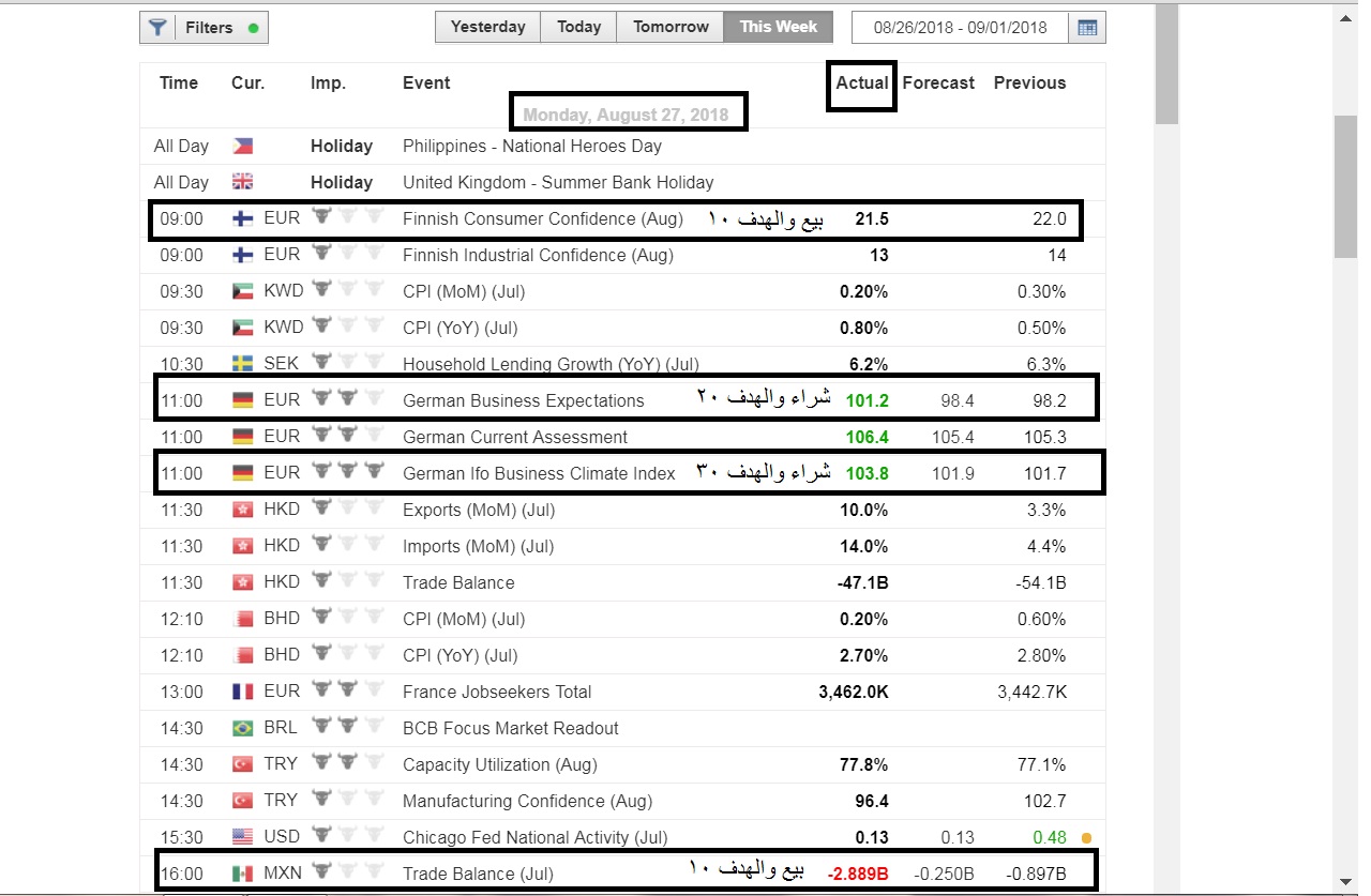 - لنفترض ان شركة الوساطة هى XM وصفحة المفكرة الاقتصادية التى يصدر منها الاخبار (المحدثة اوتوماتيكيا ) هى https://www.xm.com/calendar