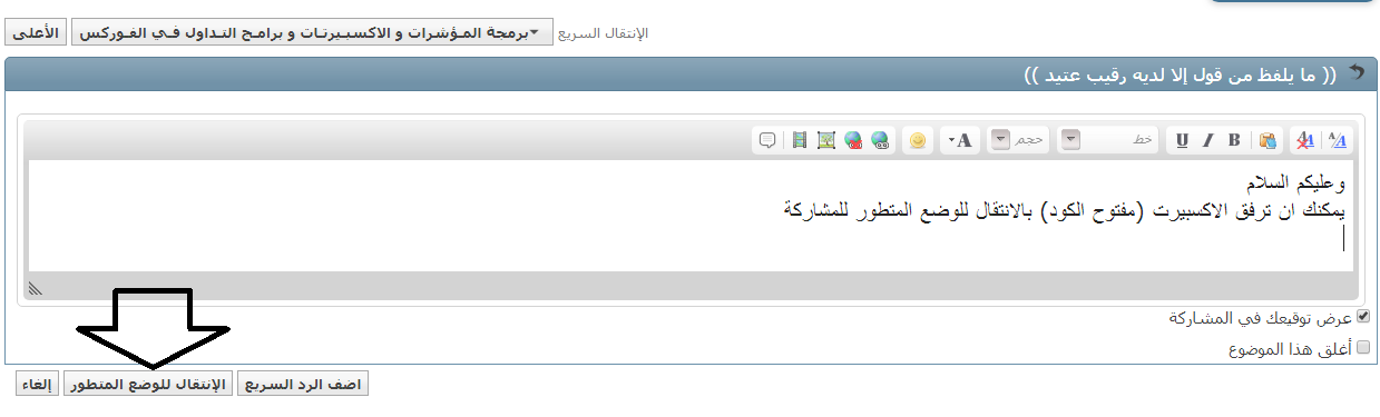 يمكنك ان ترفق الاكسبيرت (مفتوح الكود) بالانتقال للوضع المتطور للمشاركة