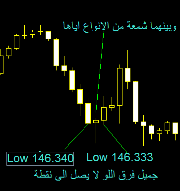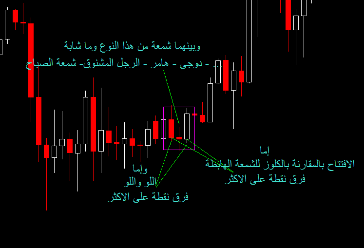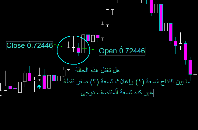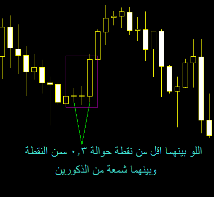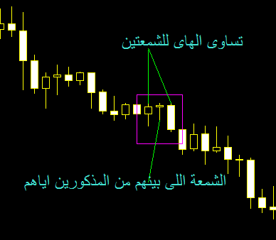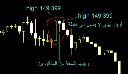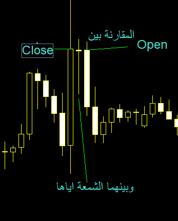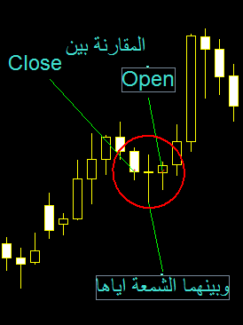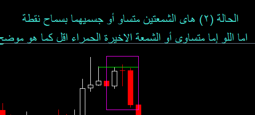 ب- نقارن احدى امرين إما (هاى الشمعتين أو لو الشمعتين ) أو (افتتاح الصاعدة مع إغلاق الهابطة أو العكس)