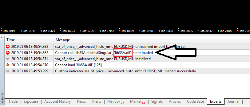 حيث عند تحميل المؤشر على اسفل الشارت يظهر المؤشر فارغا من اى خطوط والمفروض ان يبدو الشارت كما فى الصوره المرفقه