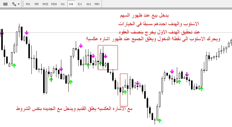 انا استخدم مؤشر بسيط يعطيني سهم للشراء وسهم للبيع