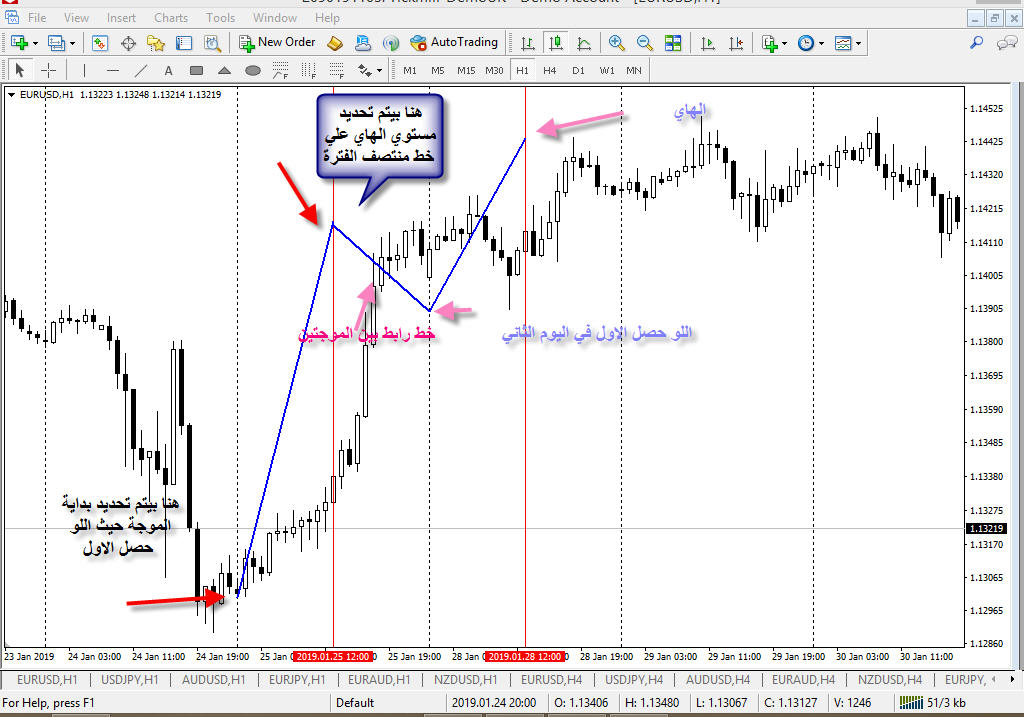 فمثلا علي فريم الساعة يتم تحديد الهاي و اللو خلال اليوم