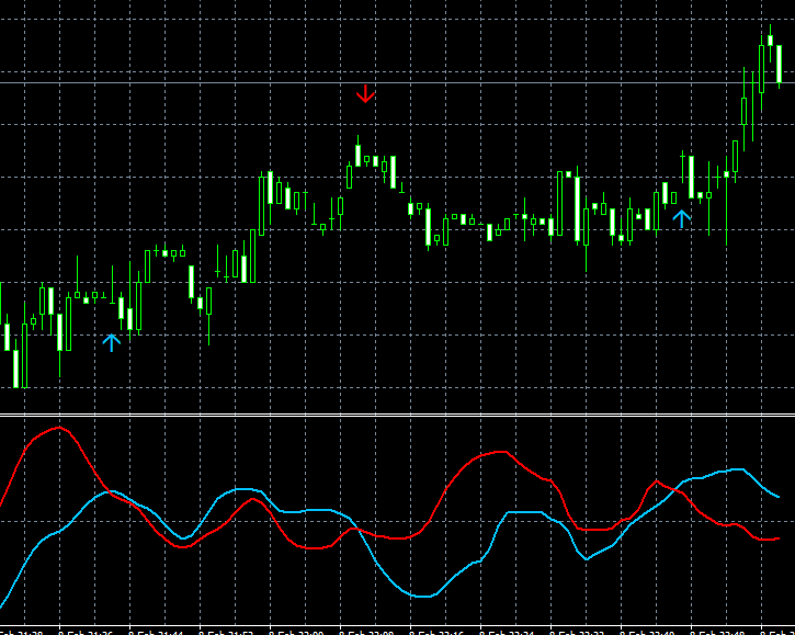 اي كلما حصل تقاطع اي ضهور سهم الاتجاه تفتح صفقة وتغلق عند التقاطع الموالي