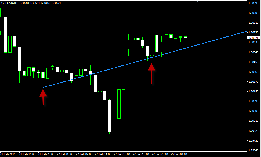 اذا كان اللو فى اخر شمعه فى الفاصل الزمنى السابق اكبر من اللو فى الشمعه الاولى فى الفاصل الزمنى السابق يتم رسم خط يصل بينهم