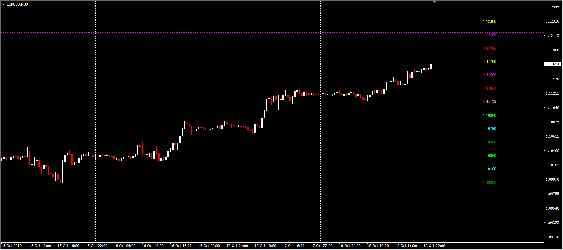 مثال : ارسم خط على سعر 1.1200 والخطوه 10 نقاط وعدد الخطوط 2 .