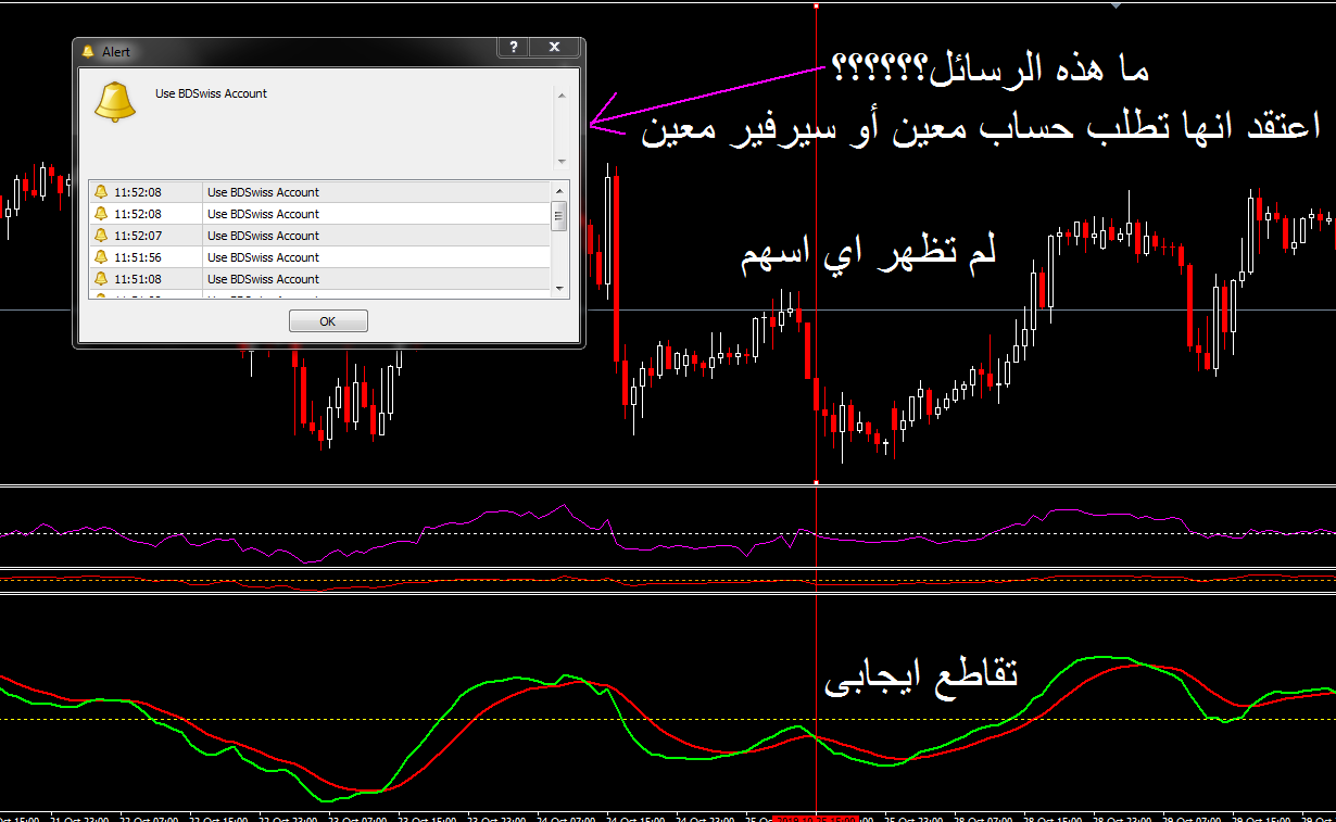 أريد التكرم بعمل مؤشر يعطة سهم ورسالة وتنبيه عند حدوث تقاطه إيجابى فقط وليس كل تقاطع لخطى الماكد ابو خطين
