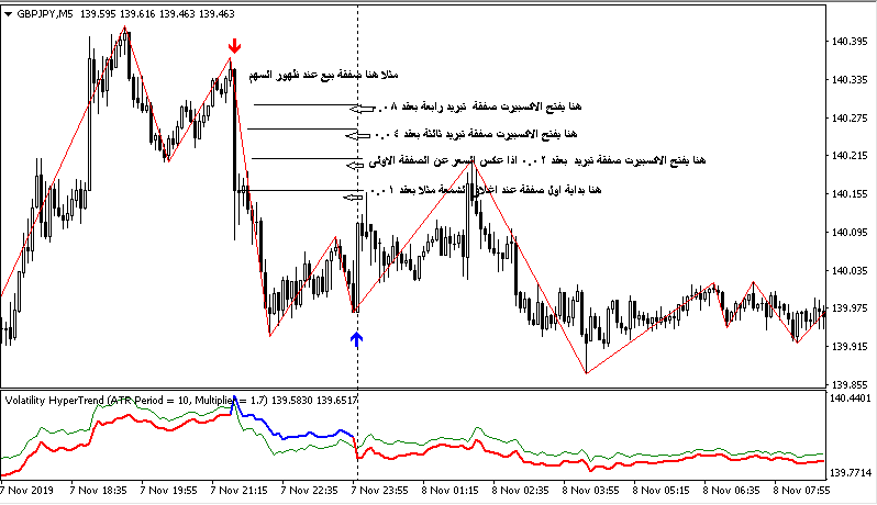 اريد عمل اكسبيرت عليه ويكون اعدادات الاكسبيرت ان يفتح صفقة بيع لو ظهر سهم المؤشر احمر وشراء اذا ظهر سهم اخضر ويكون هناء مضاعفات 1.5 او 2.0 ويكون ايضا خاصية Pip step فارق الصفقات وتكت بروفت وستوب لوز ملف مرفق 17783