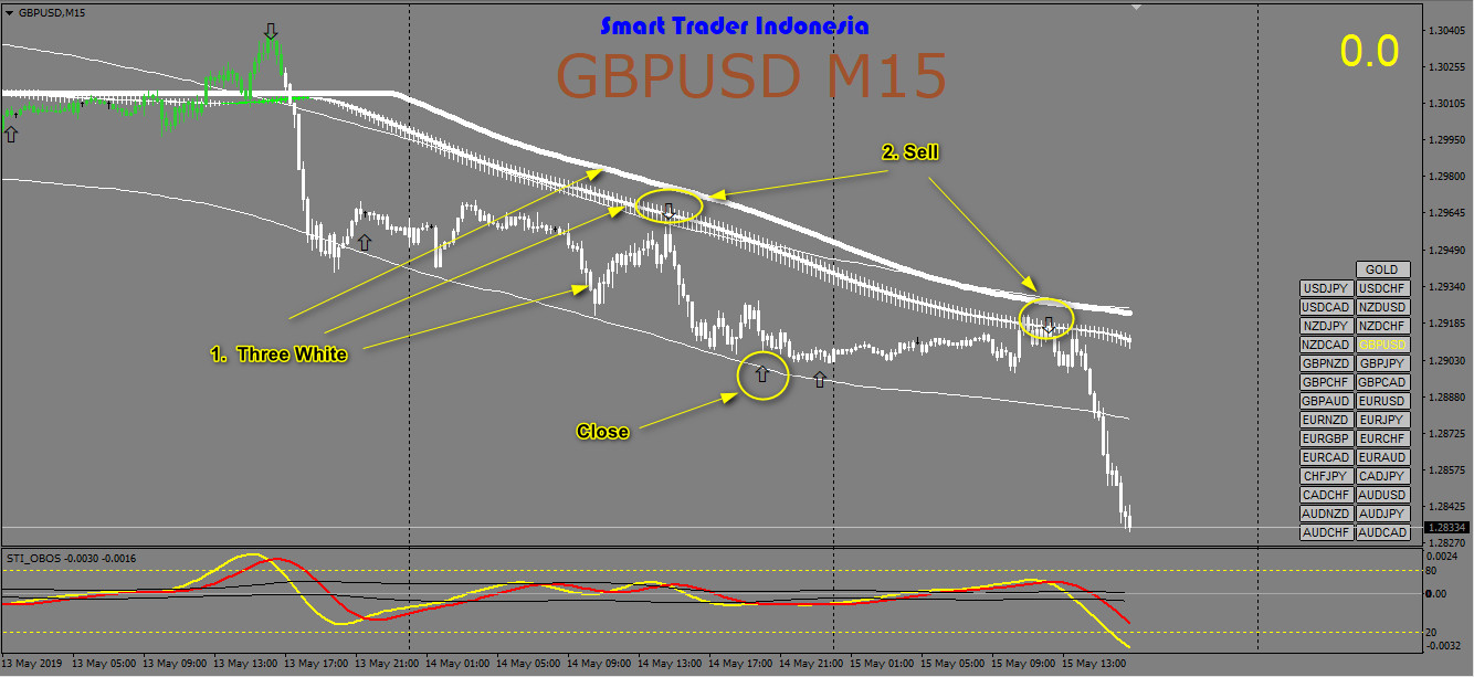 البيع الشموع والمؤاشرين باللون الابيض وسهم هابط