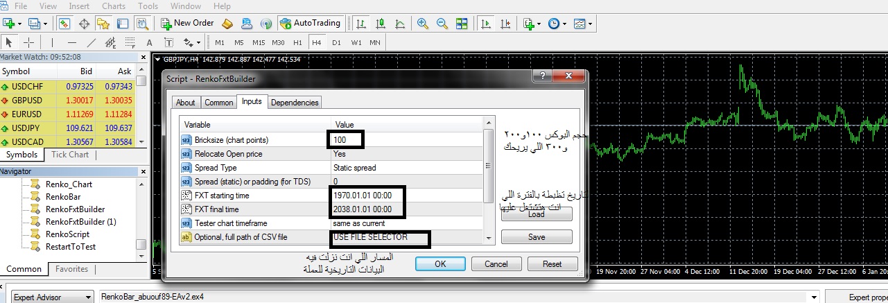 تاني خطوة تروح على mt4 بتاعتك بعد لما تكون حطيت الاسكربت بتاعك وتفتح الشارت اللي انت نزلت البيانات التاريخية بتاعتة وتجيب شارت 4 ساعات