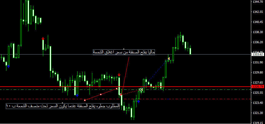 * لا يدخل الصفقة من سعر اغلاق الشمعة ولكن جعلوه يفتح الصفقة ماركت