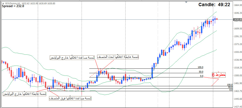 ملحوظة / يظهر على الشارت 6 خطوط (3 خطوط لاخر اشارة صاعدة + 3 خطوط لاخر اشارة هابطة )