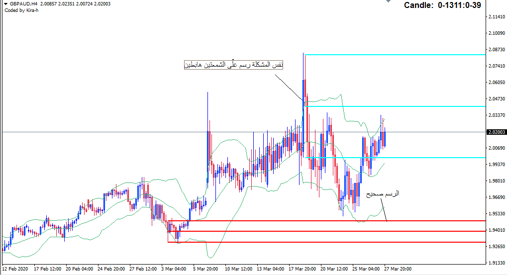 اغلاق شمعة هابطة اسفل الحد السفلى لبولينجر