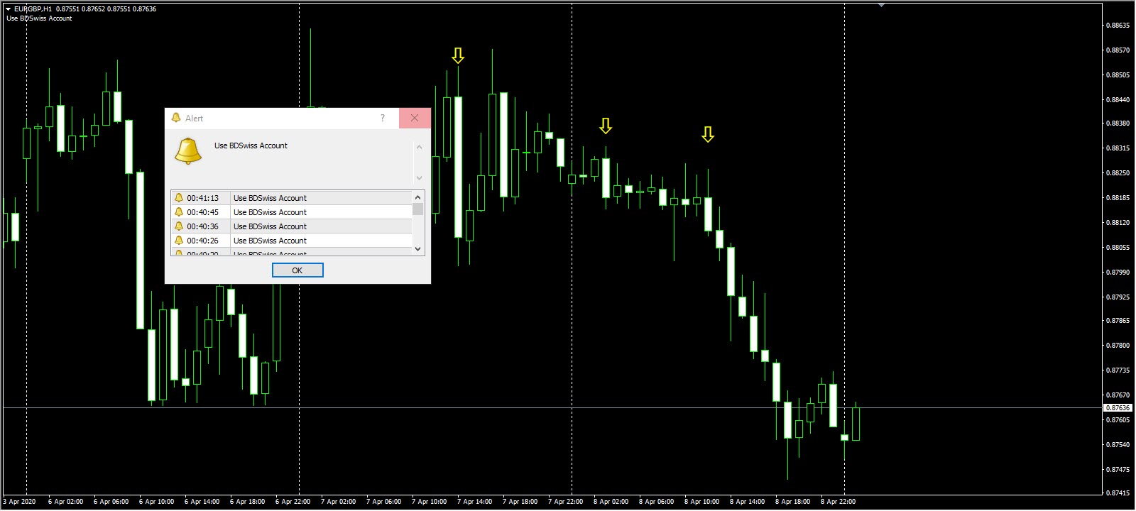 ثانى حاجه اخى اريد المؤشر يدينى سهم على الشمعة اللى محققه الشروط ويحط خط على الهاى وخط على اللو