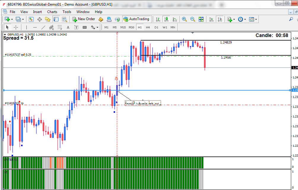 المطلوب / اضافة على الكود لرسم خط منصف الشمعة (لاخر اشارة فقط)