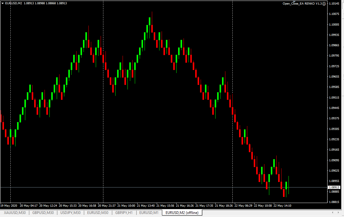 وفكرته هي فتح صفقة بيع عند إغلق شمعة وافتتاخ التالية تحتها وإغلاقها وفتح ثانية عكسها عندما يتم إغلاق شمعة وافتتاح التالية فوقها ليفتح شراء.