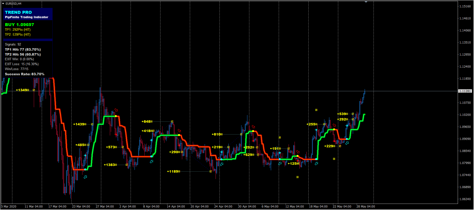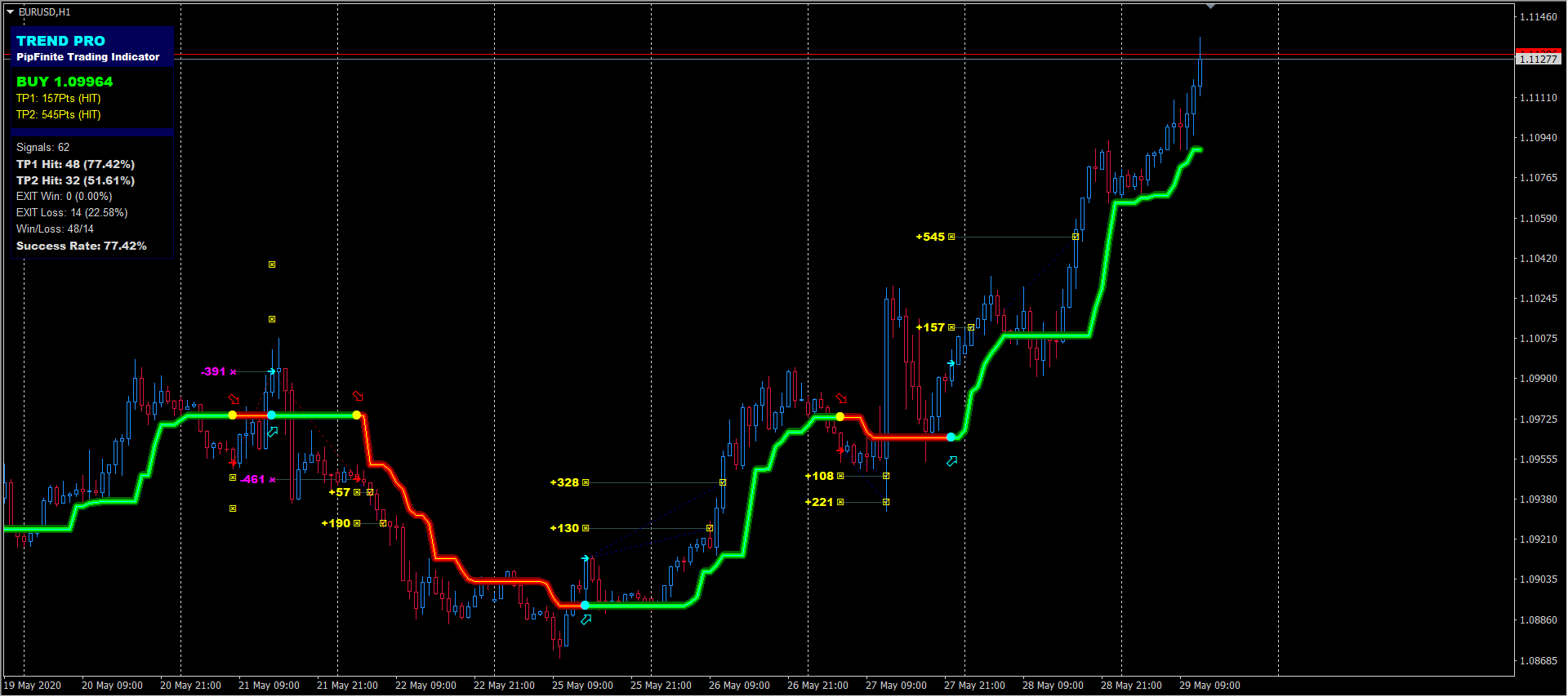 لدي مؤشر يعطي تنبيهات للشراء او للبيع ويحدد تيك بروفت 1 و 2 (هدفين للخروج بربح).