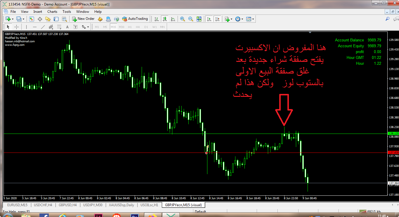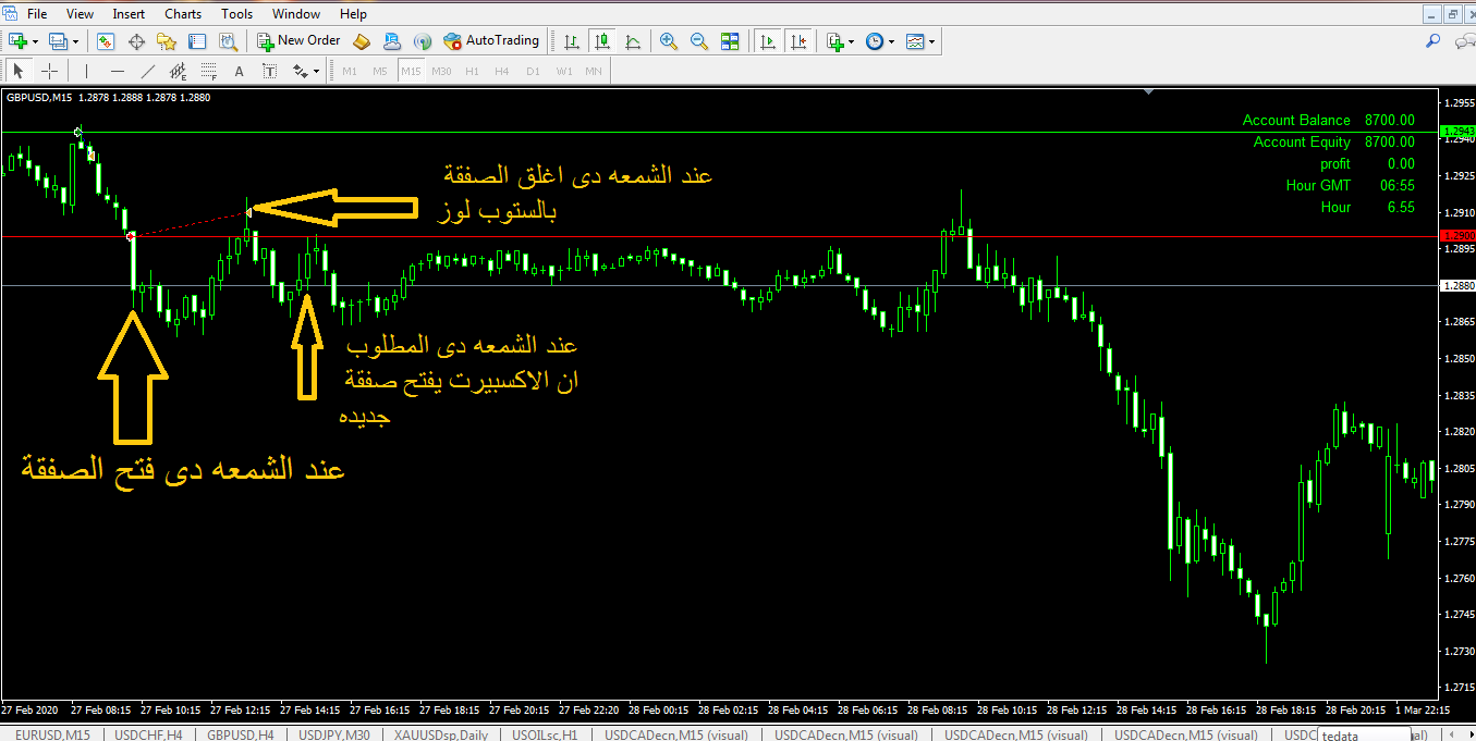 انا عدلت حجم الحساب والعقود وبالفعل بستخدم everytick لكن الاكسبيرت لايفتح الصفقة مرة ثانية بعد غلقها بالستوب فى حالة ان السعر لمس نفس الخط اللى تم غلق الصفقة عندة وذلك كما فى الصورة التوضيحية للمشاركة السابقة