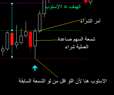 السهم ظهر مع الشمعة السابقة لأعلى إذا نفتح شراء