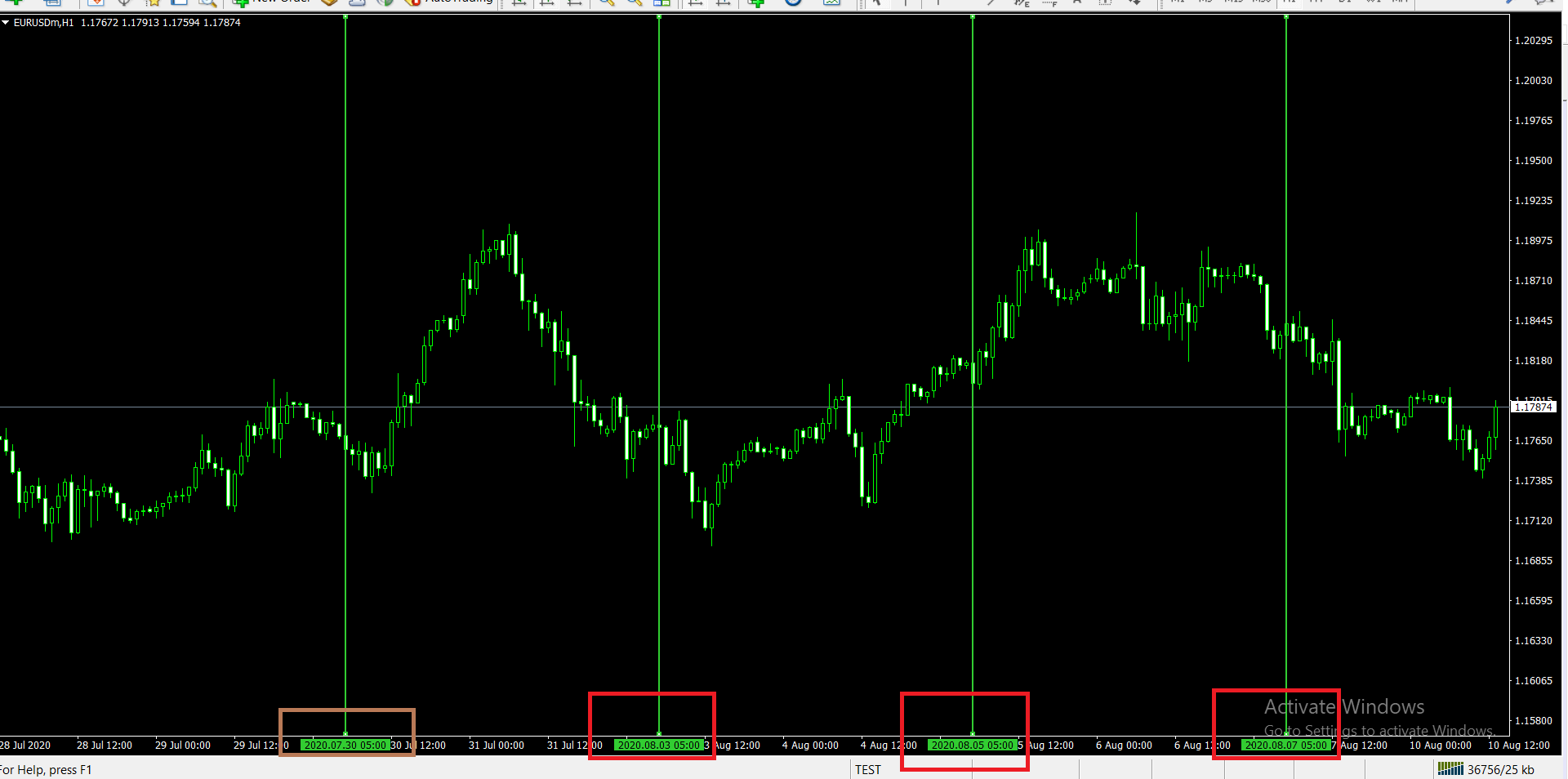 مؤشر يرسم خط عمودي بعد اغلاق شمعة احدد وقتها من الاعدادت