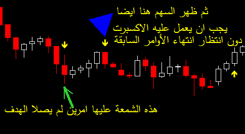 1- عند اغلاق الشمعة بعد ظهور سهم الشراء يتم فتح امرين وليس واحد : الأول مع الهاى والثانى مع 50 فايبو كالسابق