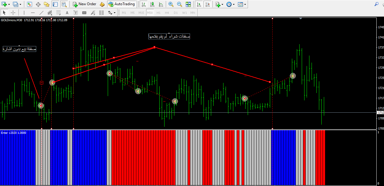 - هو الان يقوم بفتح الصفقة من سعر اغلاق الشمعة