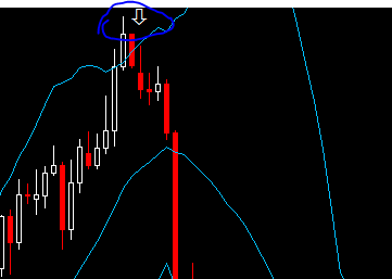 عندما يظهر هذا المؤشر وغلق شمعته وتكون ملامسة لخط البولنجر العلوى أو التالية للملامسة لخط البولنجر العلوى أو الثالثة لها يظهر مؤشر حضرتك للبيع