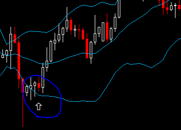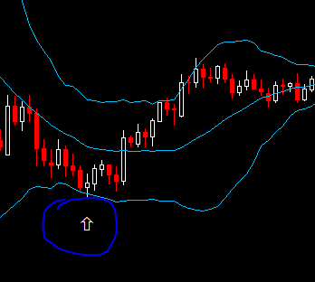 - شمعة المؤشر تلامس حد البولنجر أو تكون شمعة المؤشر المرفق تالية للشمعة الملامسة أو تكون ثالثة وبس كده.
