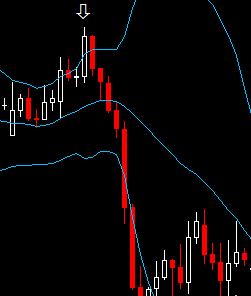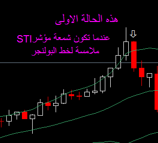 1- عندما يظهر مؤشر Sti_obos على الشمعة الملامسة لحد البولنجر