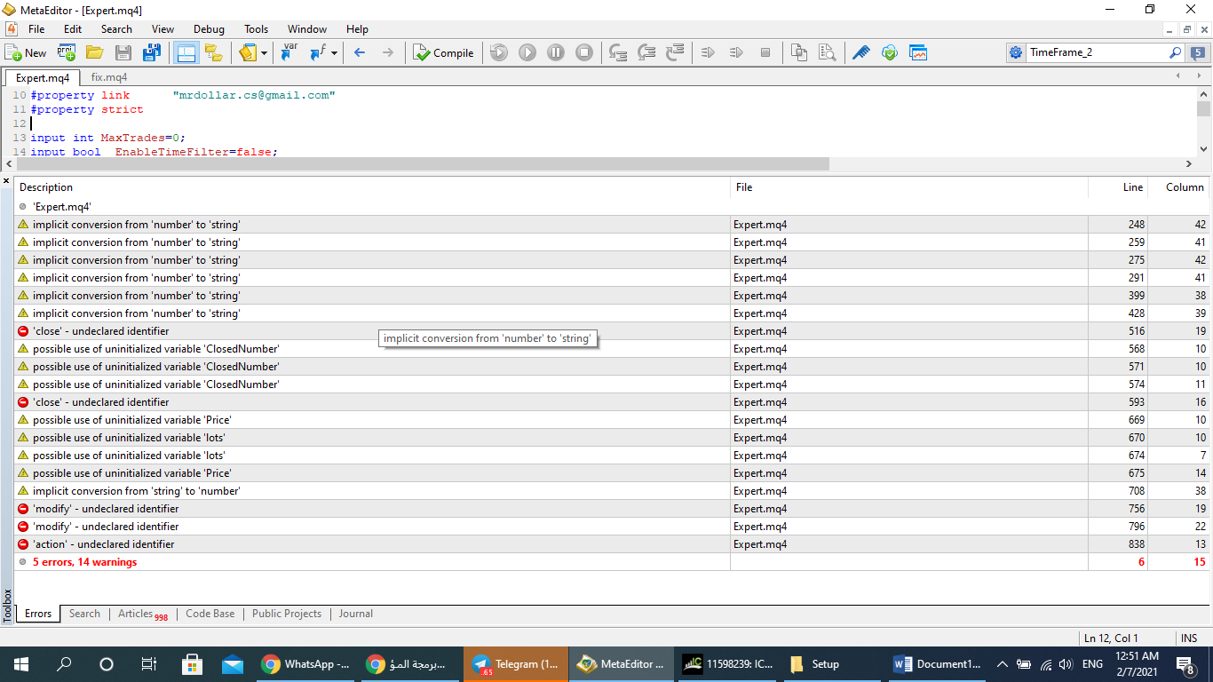يظهر لي الاخطاء التاليه عند محاولة اضافه #property strict