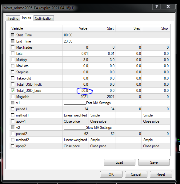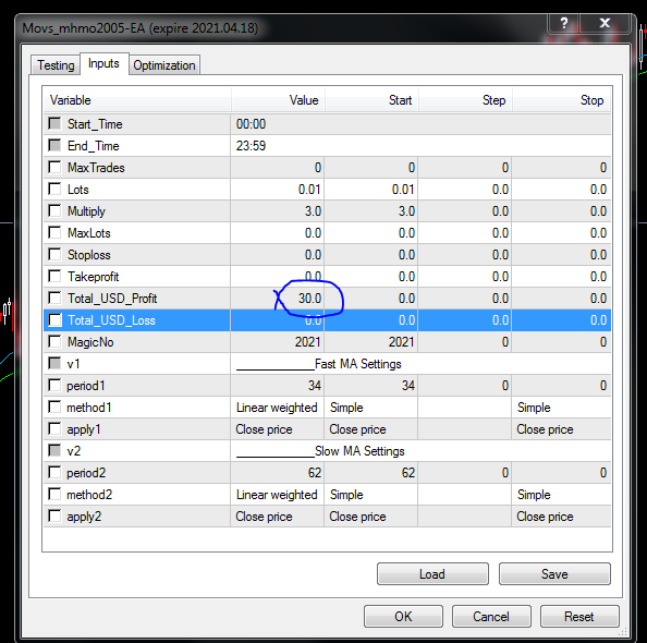 لا ادرى ما المشكلة مرفق لحضرتك لم اضف لاعدادات الاكسبرت سوى الربح الكلى 50