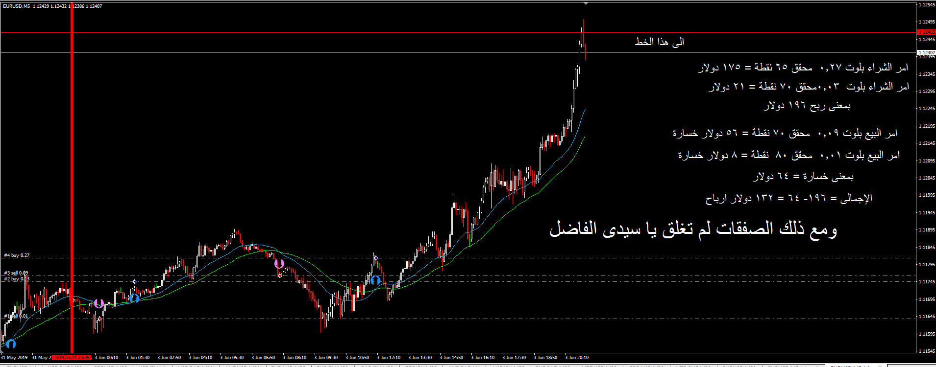 ومع ذلك فى الاختبار بلغ الربح اكثر من 100 دولار ولم تغلق الصفقات والصور توضح لحضرتك ذلك